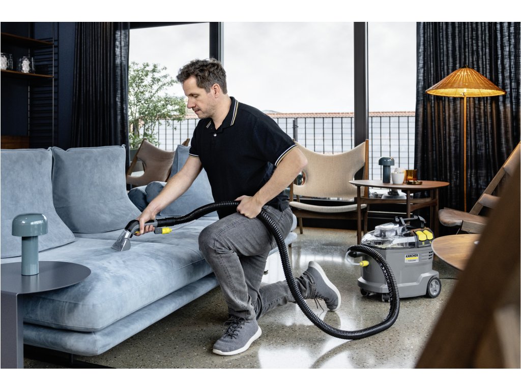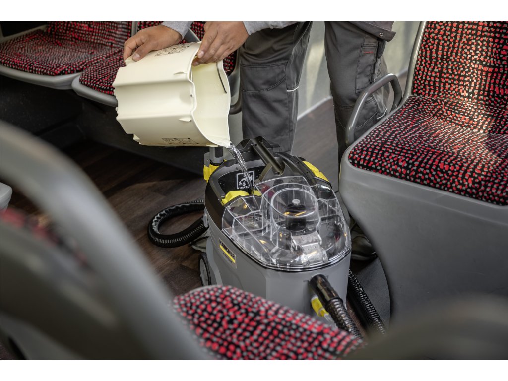 Díky vynikajícímu výkonu zpětného sání dosahuje skvělých a hygienických výsledků a umožňuje rychlé opětovné použití textilních povrchů. Sprejový extrakční čistič nastříká čisticí roztok hluboko do vláken a zároveň jej odstraní se špínou, což zaručuje dokonalé čištění koberců, čalounění a dalších textilních povrchů.