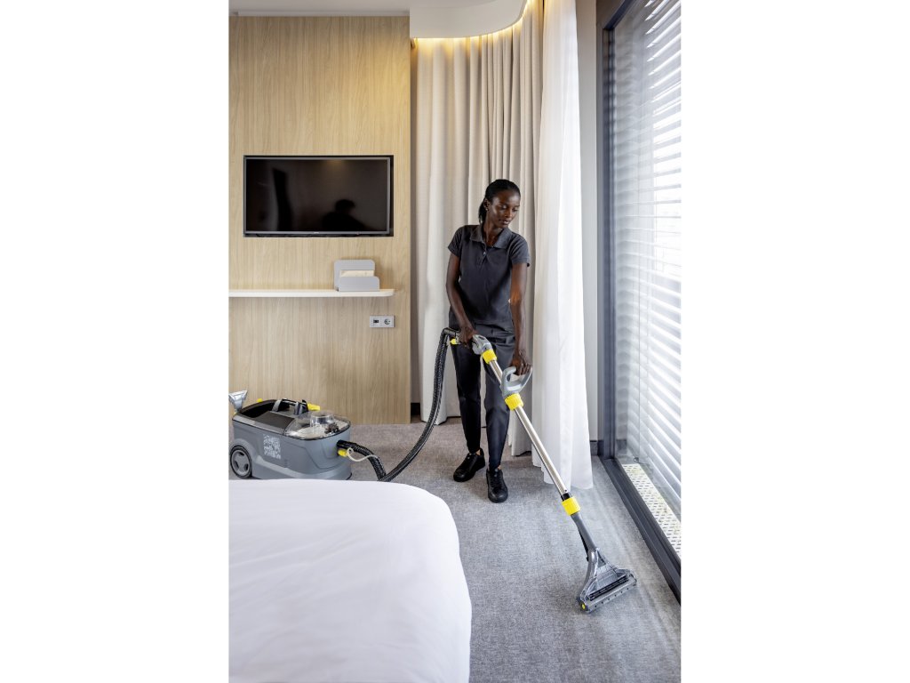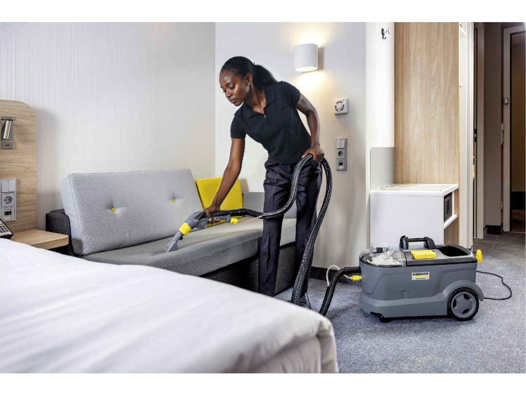 Profesionální extraktor Puzzi 10/1 Edition je navržen pro hloubkové čištění koberců, čalounění a dalších textilních ploch. Pomocí technologie sprejové extrakce nastřikuje čisticí roztok hluboko do vláken, kde uvolní nečistoty, a následně je okamžitě odsává – díky tomu zůstává povrch hygienicky čistý a rychle schne.
