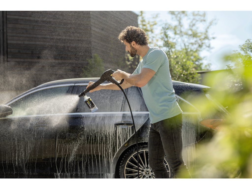 Stačí naplnit nádobku čisticím prostředkem Kärcher, trysku jednoduše nasadit na pistoli tlakové myčky a začít s čištěním. Průhledná nádobka s objemem 0,3 litru umožňuje snadnou kontrolu množství prostředku a nastavitelný proud zajišťuje přesnou aplikaci podle potřeby.