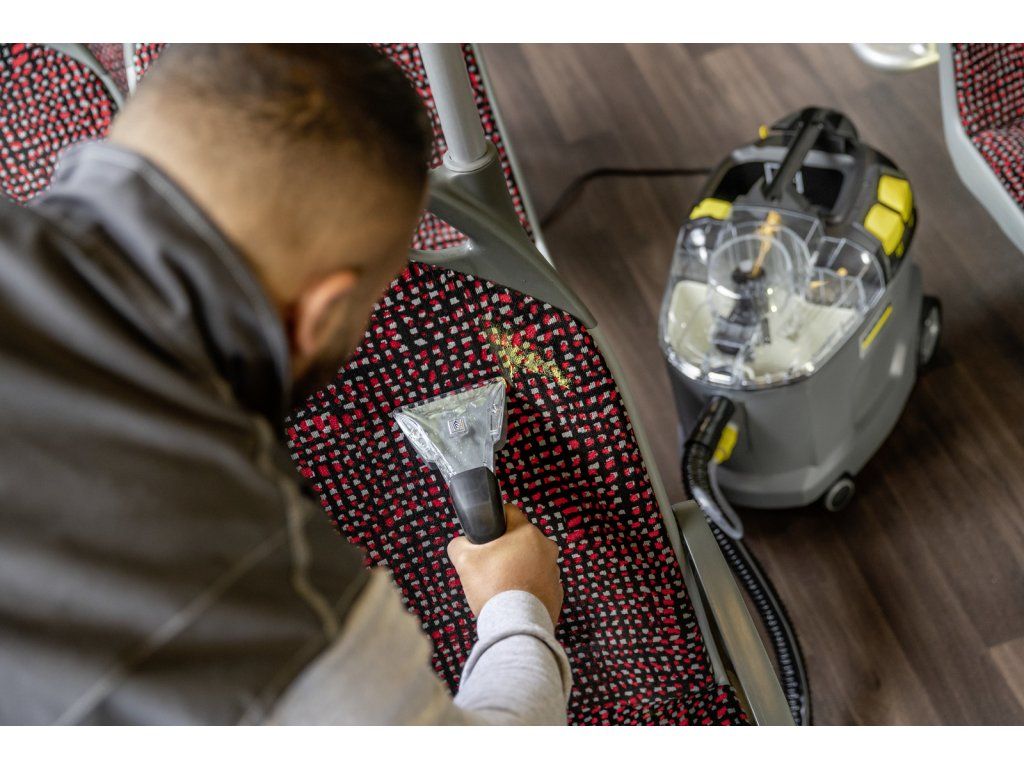 Robustní, odolný, účinný: Sprejový extrakční čistič Puzzi 8/1 působivě čistí čalounění a odstraňuje skvrny z textilních povrchů s vynikajícími a hygienickými výsledky čištění a vysokou účinností.