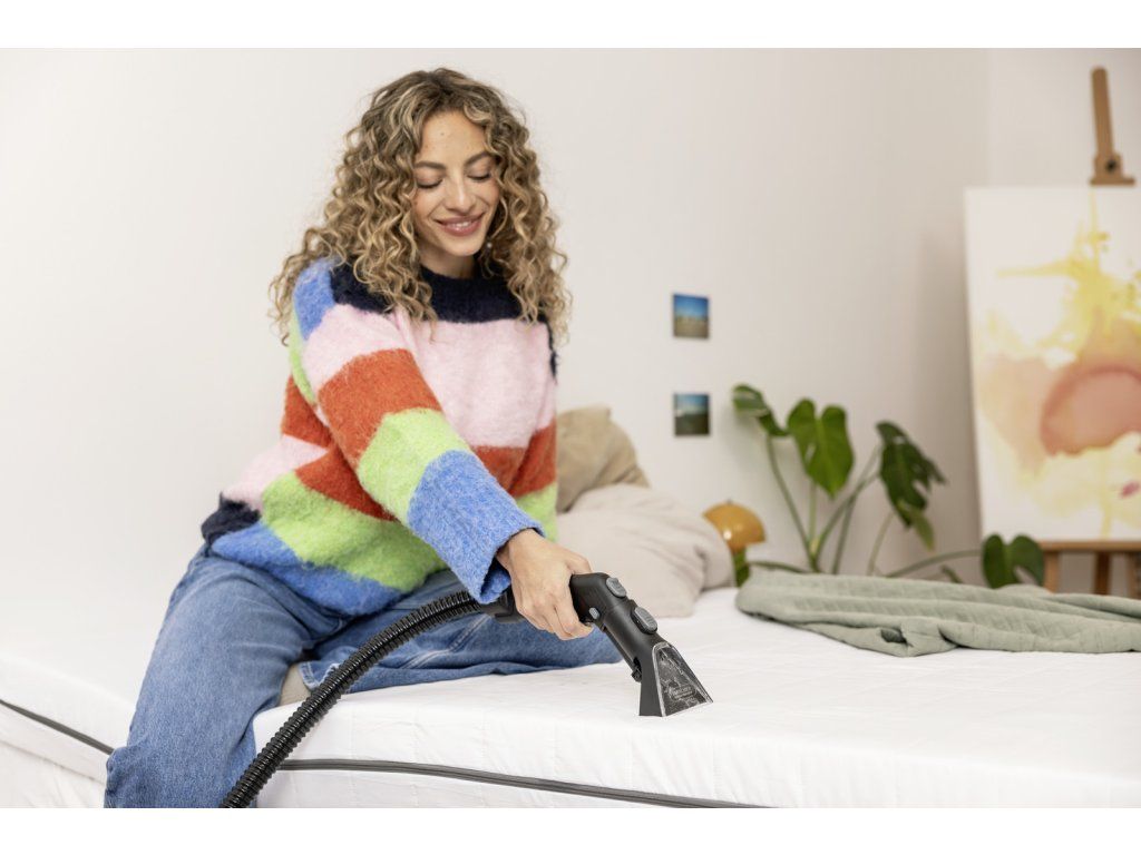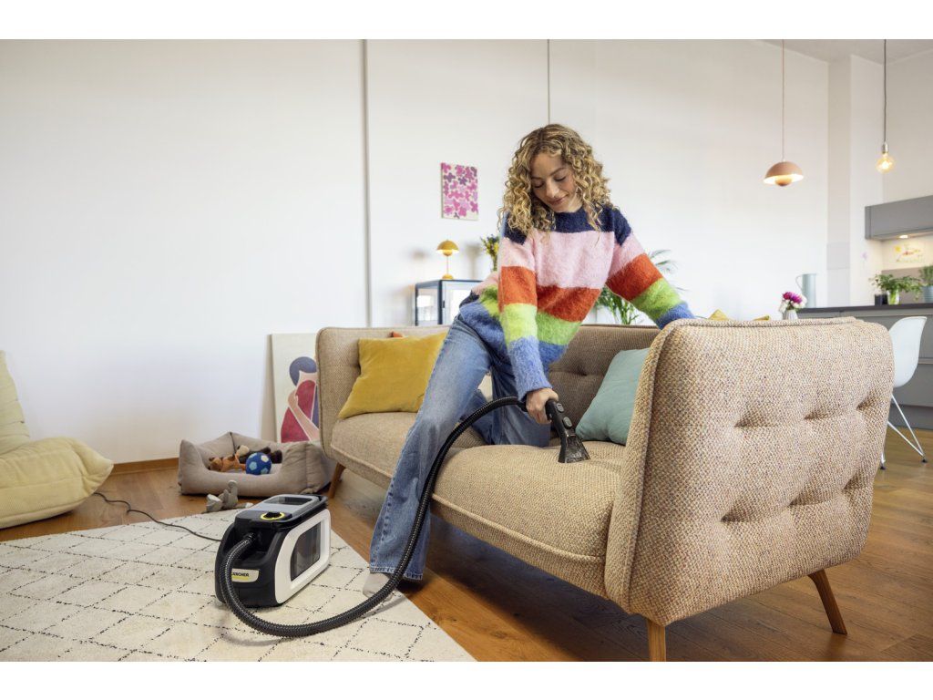 Hloubkové čištění a kompaktní design: tepovač SE 3 Compact Home je výkonné, energeticky úsporné řešení pro čištění textilních povrchů. Díky kompaktnímu designu se s přístrojem nejen snadno manipuluje, ale lze jej také uložit, aby se ušetřilo místo, což zajišťuje, že je rychle připraven k důkladnému a pohodlnému čištění do hloubky vláken i v případě nepředvídaného znečištění. Nečistoty z čalouněného nábytku, koberců, běhounů a malých koberců odstraní rychle a účinně. Dlouhá a flexibilní sací hadice se zabudovanou hadicí na čisticí prostředek zaručuje velké pohodlí a flexibilitu i na těžko přístupných místech. Dlouhý kabel zajišťuje maximální rozsah pohybu. Díky praktickým možnostem uložení na přístroji je veškeré příslušenství vždy po ruce. Systém nádržky 2 v 1 zajišťuje, že uživatelé nemusí přijít do styku se špínou. A jakmile je úklid dokončen, extrakční čistič s rozprašovačem ještě více zaujme funkcí hygienického čištění systému, která zabraňuje tvorbě bakterií a zápachu. Součástí balení je extrakční hubice na čalounění, extrakční hubice na štěrbiny a čisticí prostředek.