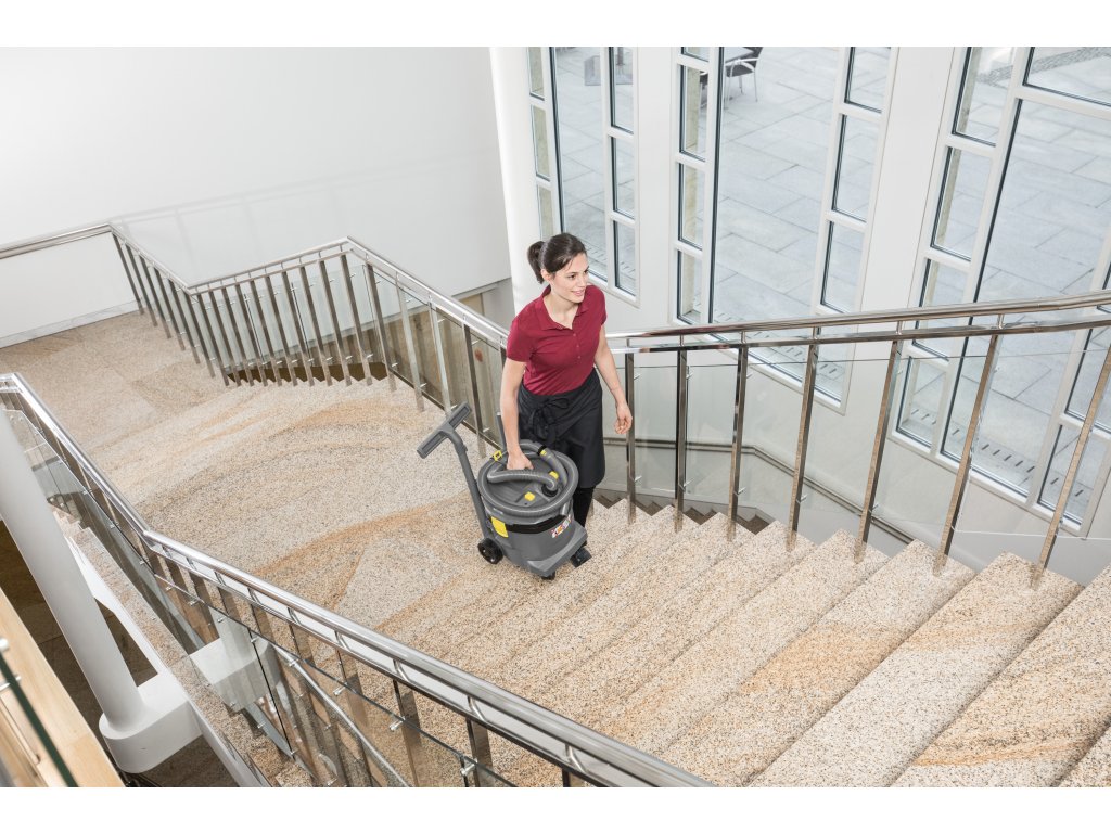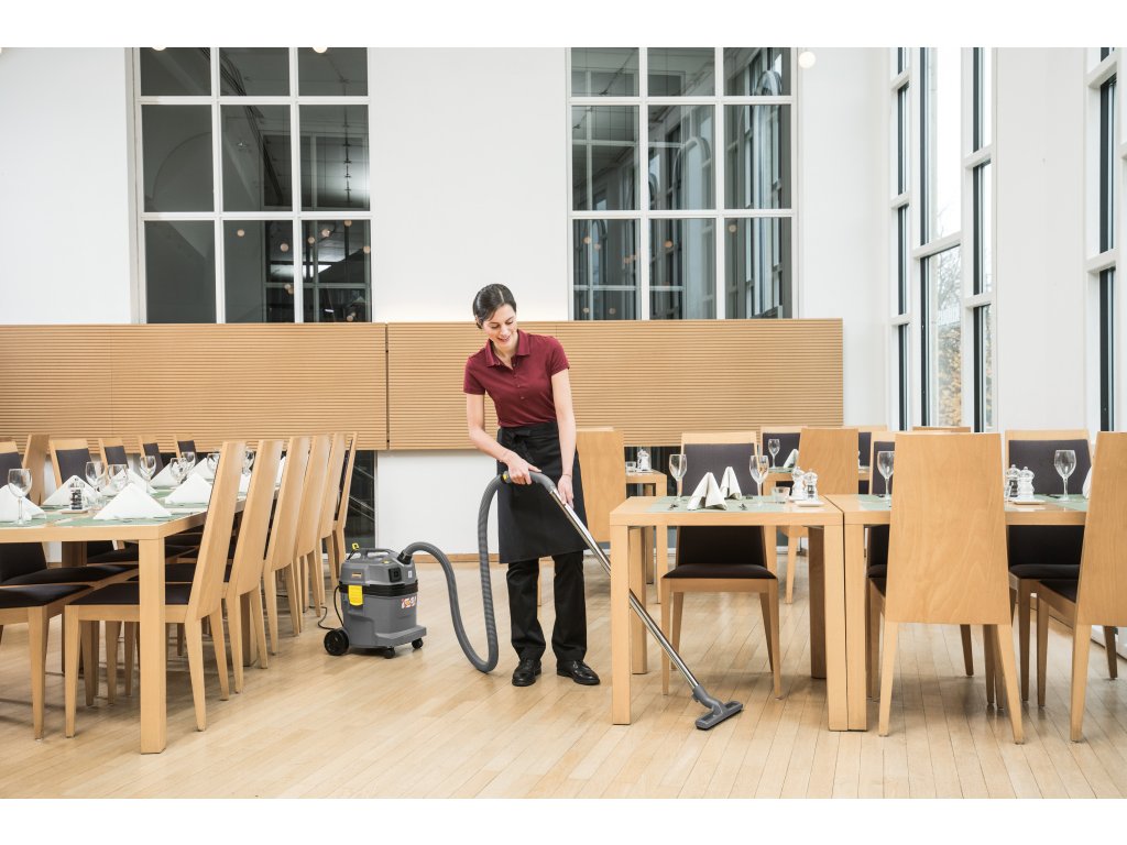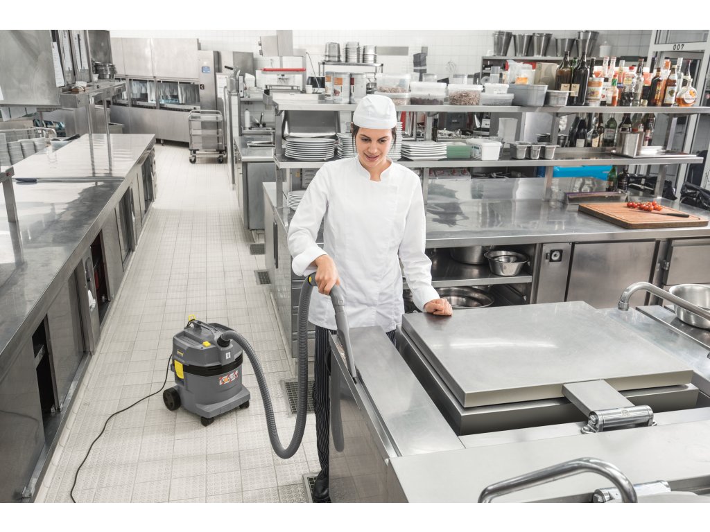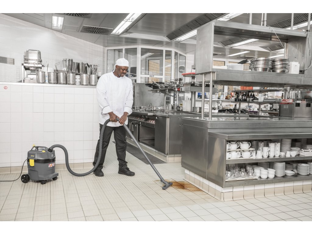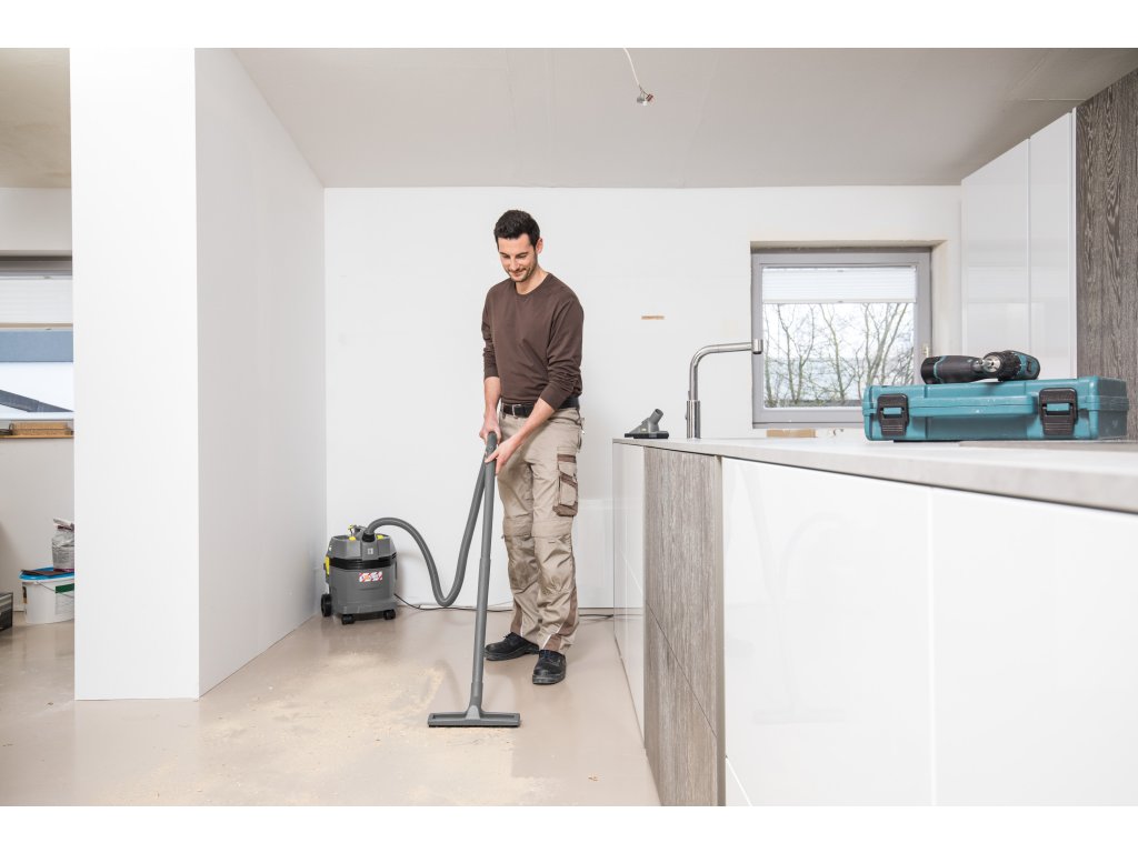 Lehký, kompaktní a výkonný pomocník pro řemeslníky, údržbáře i úklidové firmy. Model NT 22/1 Ap Te je vybaven zásuvkou pro elektrické nářadí s funkcí automatického spuštění, silným sacím výkonem a poloautomatickým čištěním filtru, takže si poradí s prachem, hrubými nečistotami i kapalinami.