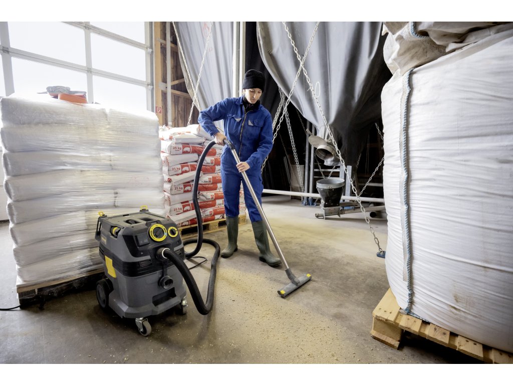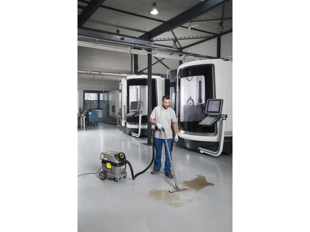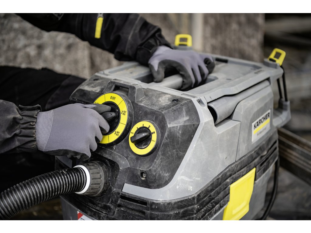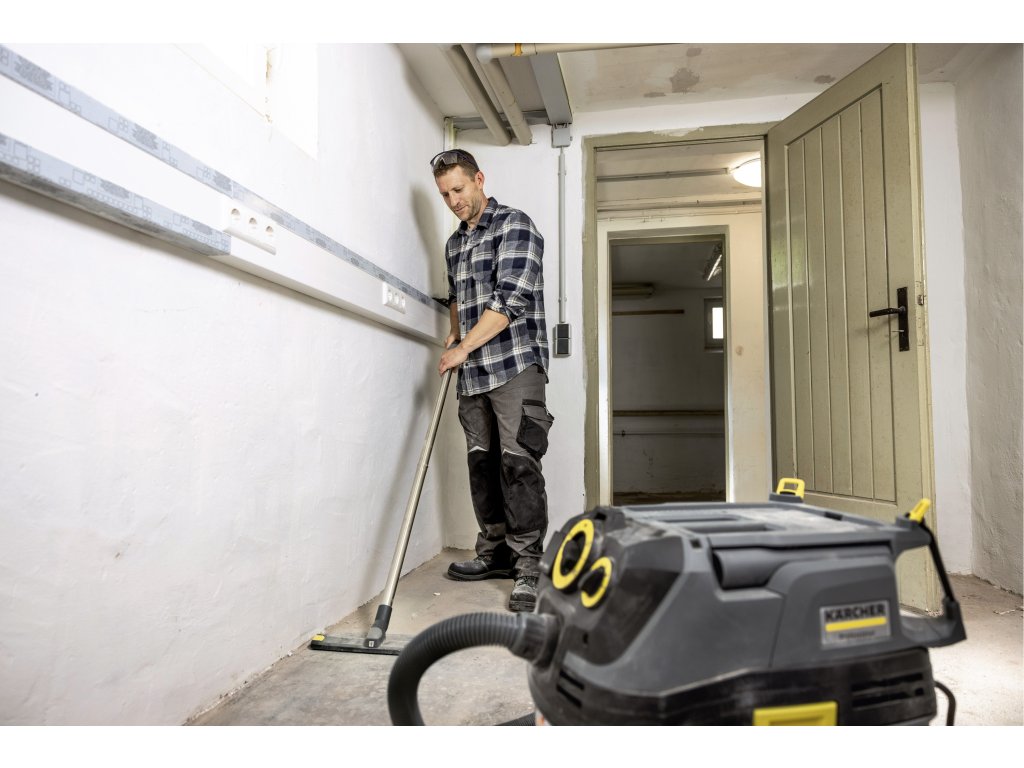 Mokro-suchý vysavač Kärcher NT 30/1 Tact Te je univerzální stroj pro profesionální použití v náročných podmínkách. Zvládne jemný prach, hrubé nečistoty i rozlité kapaliny – rychle, efektivně a bez námahy. Výkonný motor (1 380 W), regulace sacího výkonu pomocí otočného přepínače a systém automatického čištění filtru Tact zajišťují stálý výkon i při dlouhodobém vysávání.