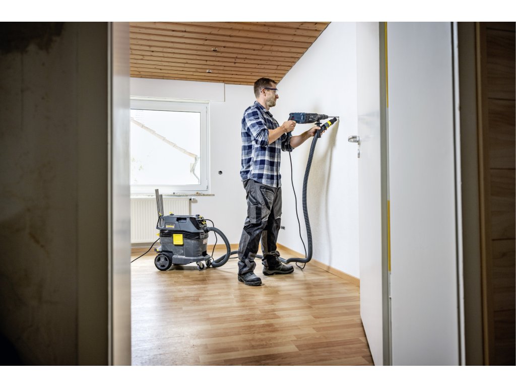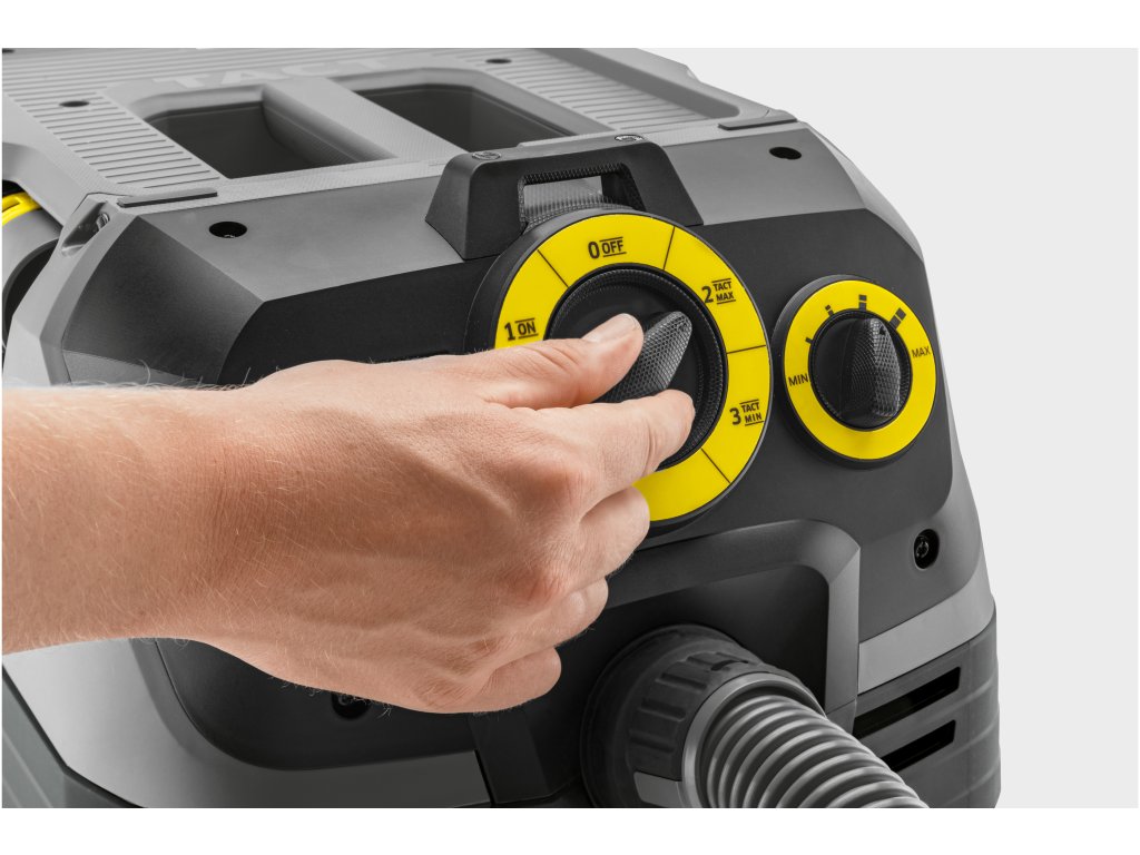 Spolehlivý pomocník do dílny i na stavbu – s automatickým čištěním filtru Tact a zásuvkou pro elektrické nářadí.