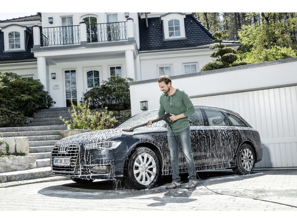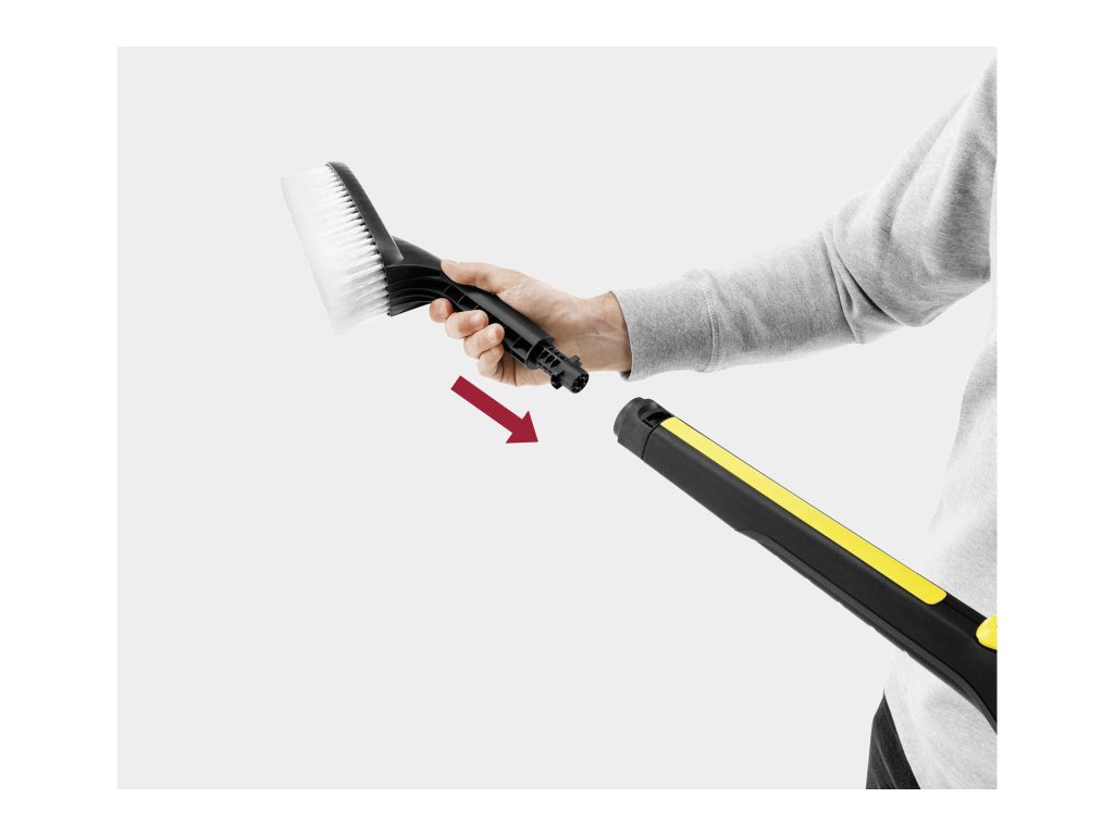Kartáč zaručuje šetrné, ale důkladné čištění bez poškrábání a je kompatibilní se všemi modely tlakových myček Kärcher řady K 2 až K 7.