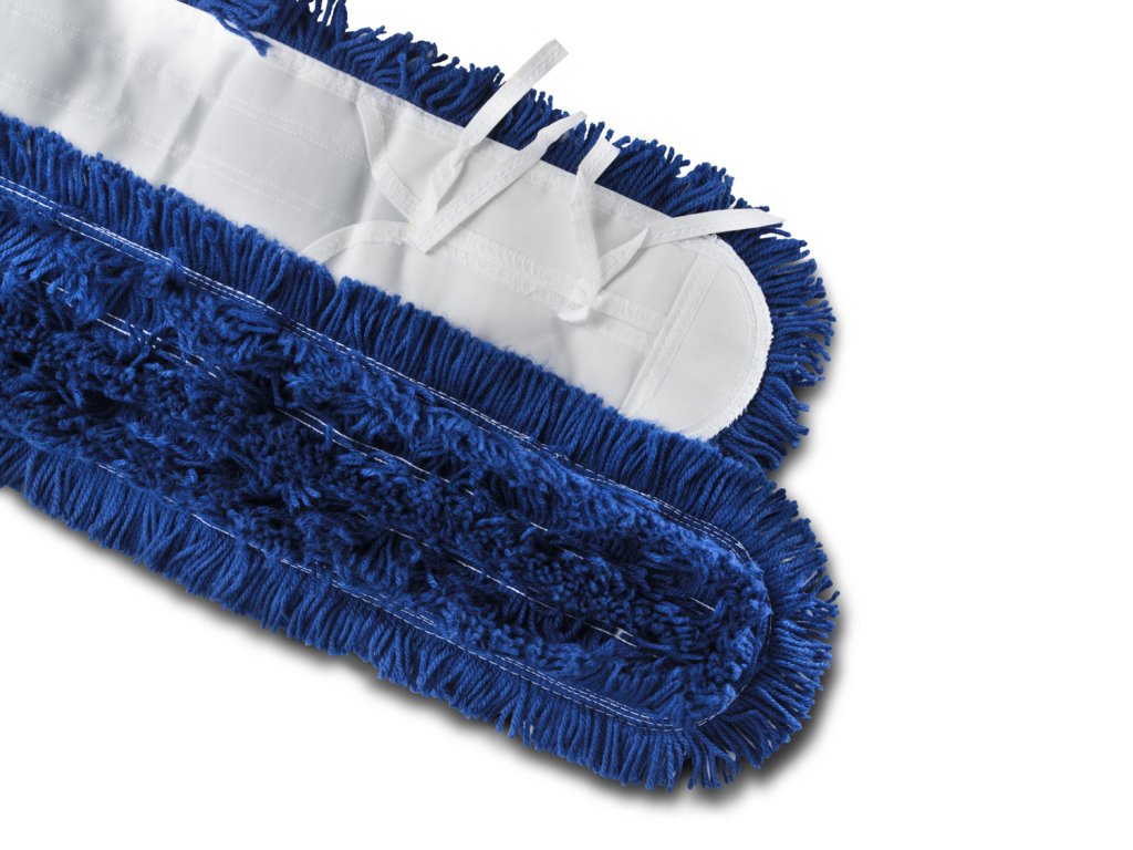 Pro opravdu velké úklidové výzvy. Dlouhý, účinný a navržený pro maximální záběr při běžném každodenním úklidu. Mop ze směsi akrylu a polyesteru s praktickými kapsami na stahovací šňůrky a třásněmi po celém obvodu – vnitřní i vnější pro perfektní sběr prachu a nečistot.