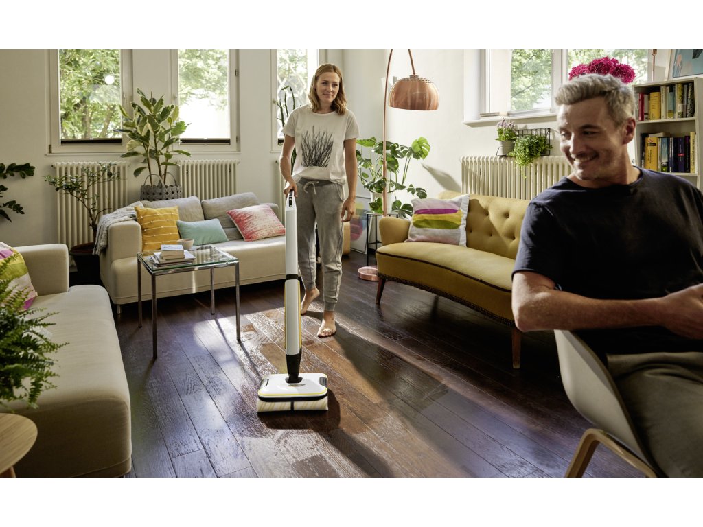 2 v 1: vytírejte i bez předchozího vysávání. FC 7 podlahu umyje a zbaví suchých nečistot v jednom kroku. Ideální volba i do velkých domácností s dětmi a domácími mazlíčky.