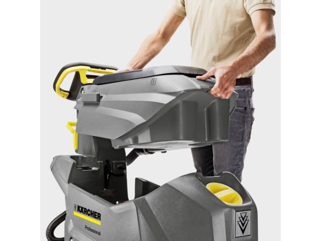 Stroj je vybaven kotoučovou mycí hlavou, integrovaným odsáváním, 50l nádrží na čistou i špinavou vodu a prostorem pro různé typy baterií, což umožňuje použití i při vícesměnném provozu.