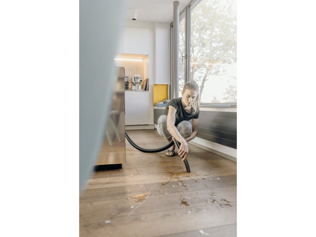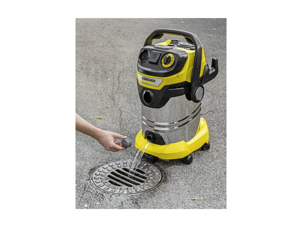 Mimořádně výkonný a zároveň energeticky úsporný vysavač na mokré i suché vysávání s 30litrovou nerezovou nádobou, praktickým plochým skládaným filtrem, zásuvkou pro připojení nářadí a vypouštěcím ventilem. Ideální pro náročné úklidové práce v dílně, garáži, na stavbě i doma.