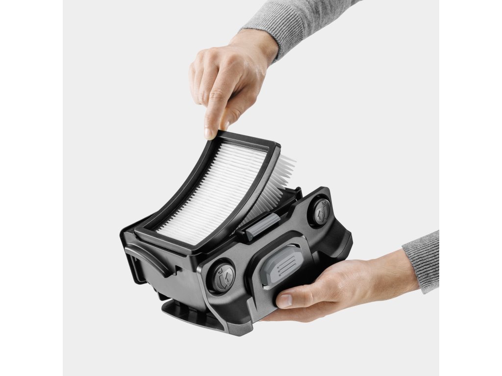 - Plochý skládaný filtr – pro mokré i suché vysávání bez nutnosti výměny filtru