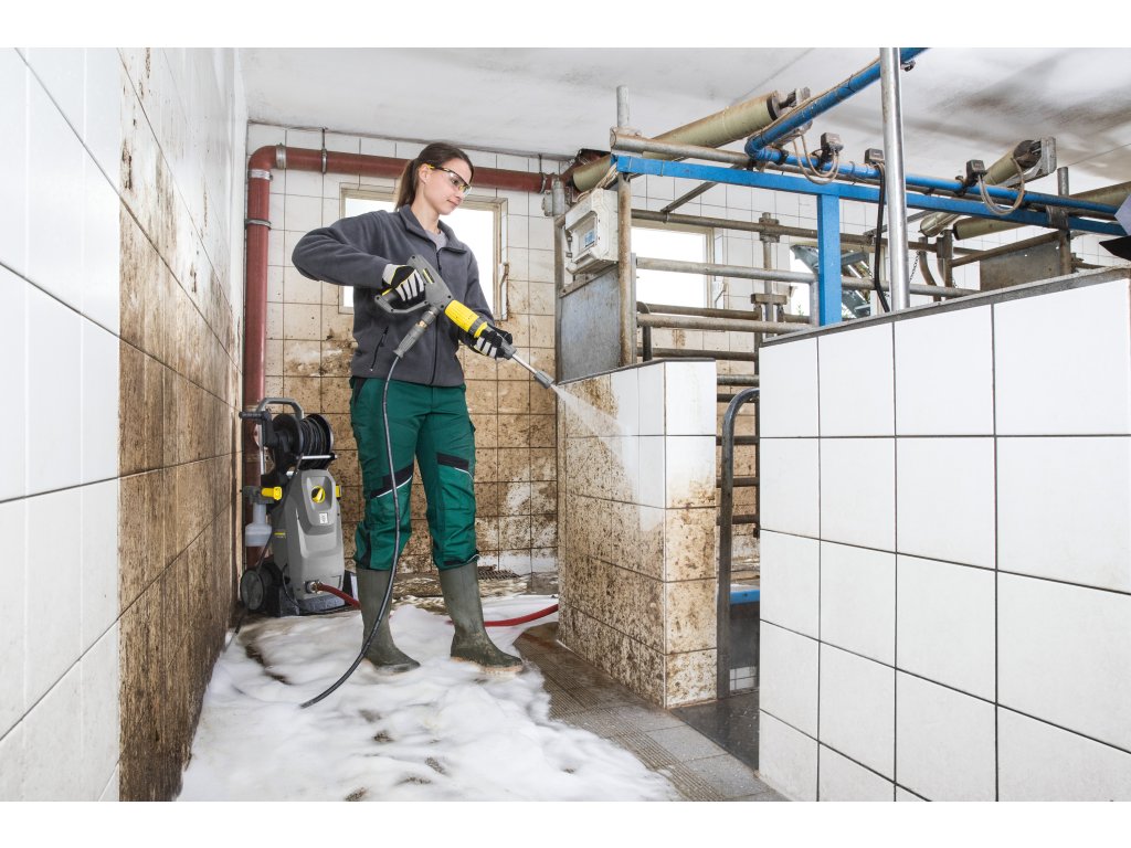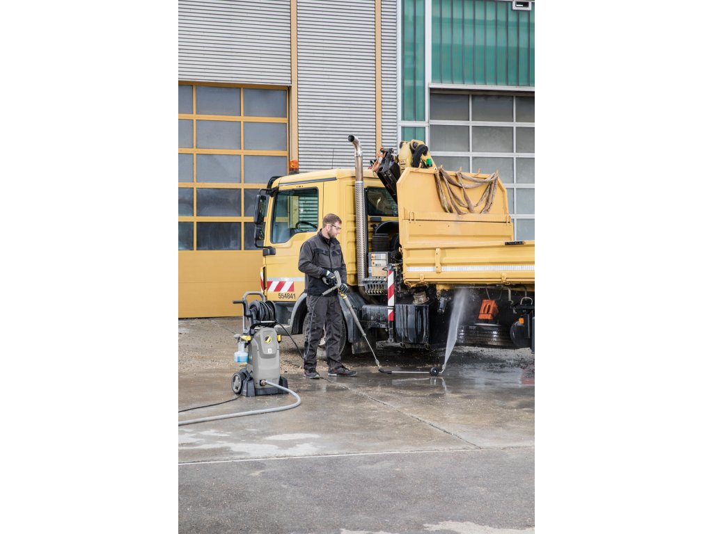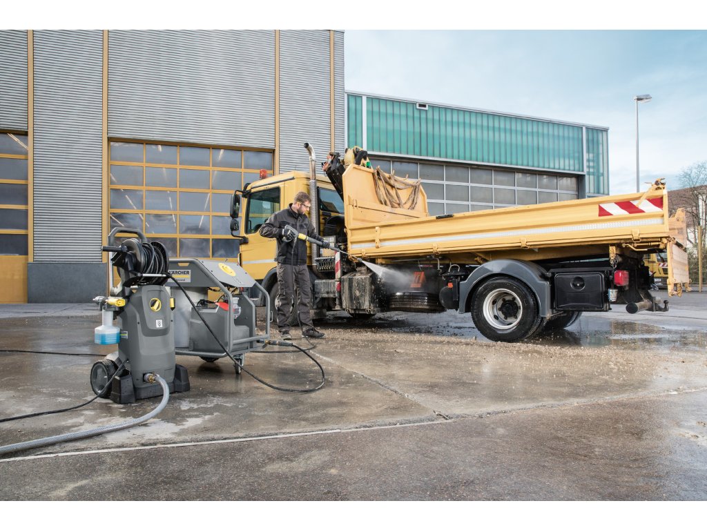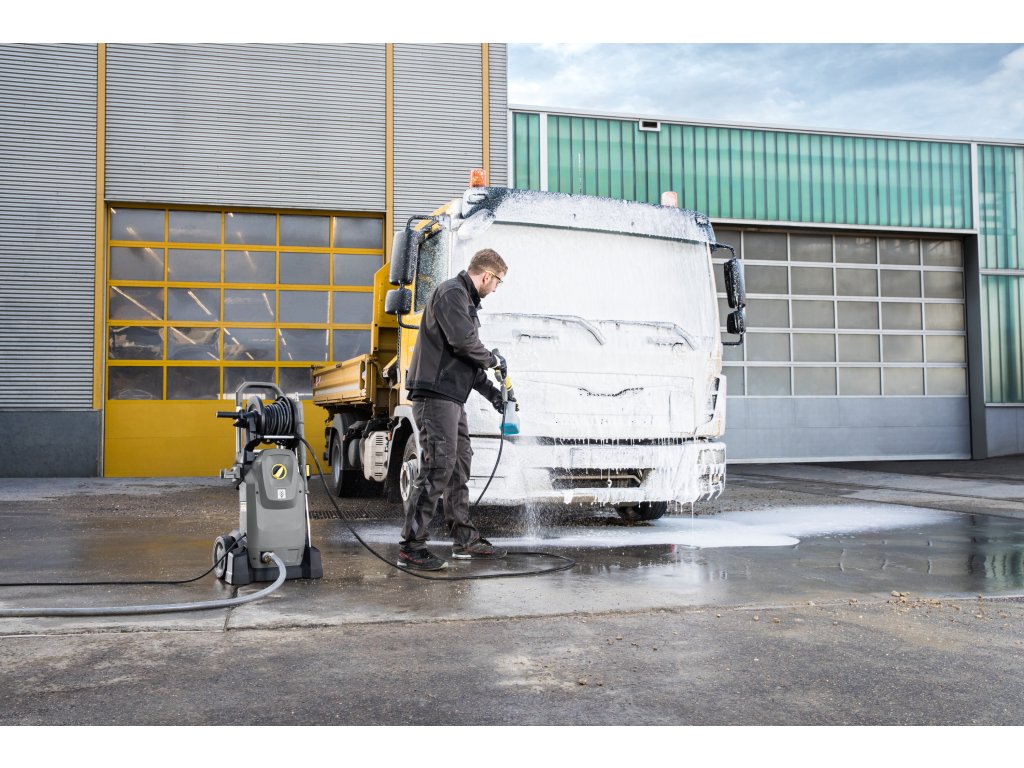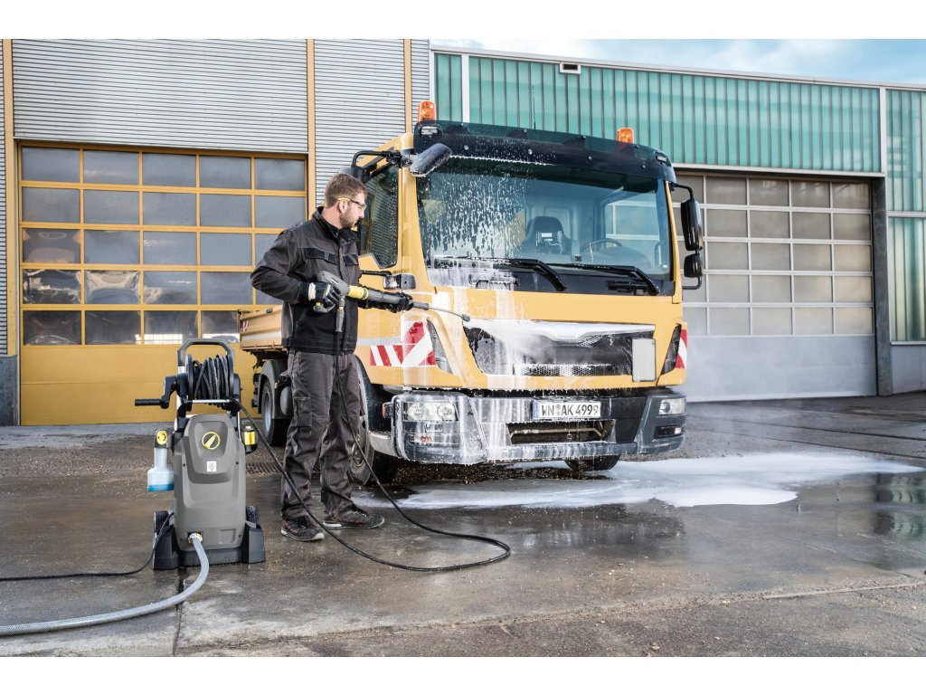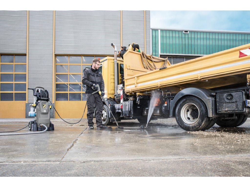 Výkonný pomocník pro profesionální čištění. Vysokotlaký čistič HD 7/17 M Plus si díky tlaku až 17 MPa bez problémů poradí i s velmi odolnými nečistotami. Je ideální pro náročné použití na stavbách, ve veřejném prostoru nebo v průmyslovém prostředí.